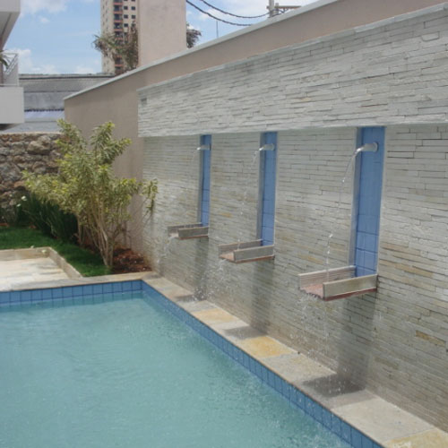 Material muito solicitado em projetos de decoração como: Revestimentos de cascatas em piscinas, Laterais, Portais, Colunas, etc.